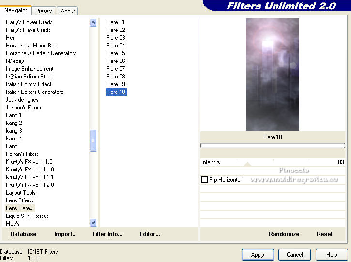 11. Effets>Modules Externes>Filters Unlimited 2.0 - Lens Flares - Flare 10, par défaut