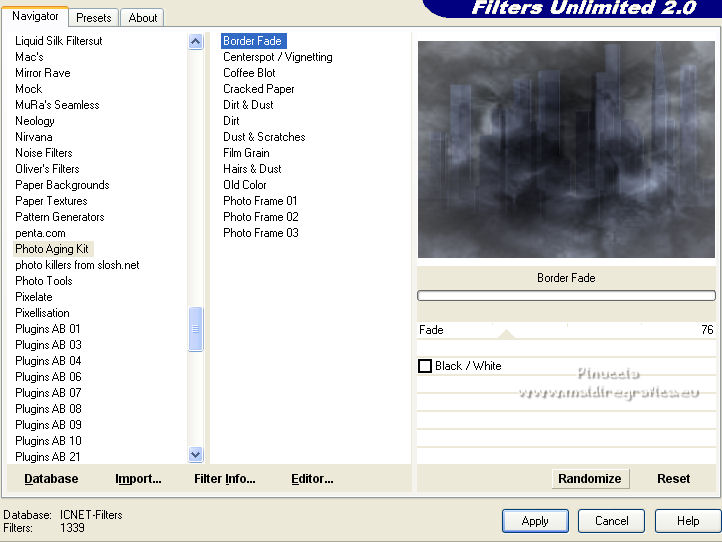 9. Effets>Modules Externes>Filters Unlimited 2.0 - Photo Aging Kit - Border Fade