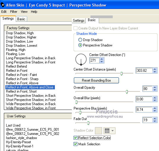 Effets>Modules externes>Alien Skin Eye Candy 5 Impact - Perspective Shadow