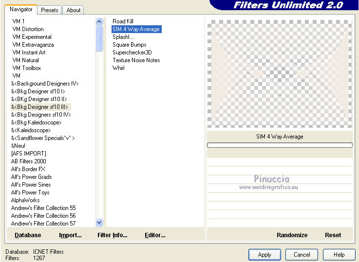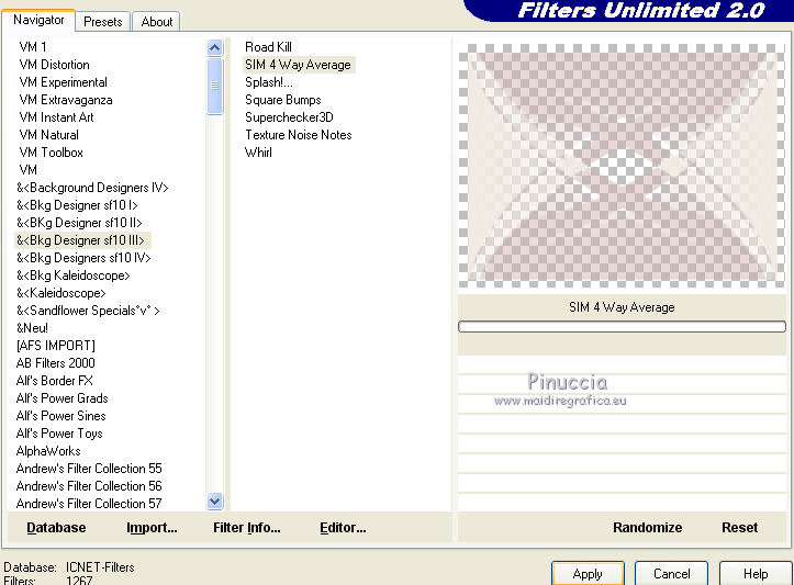 7. Effets>Modules Externes>Filters Unlimited 2.0 - &<BKG Designer sf10III> - SIM 4Way Average.