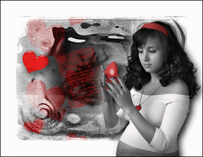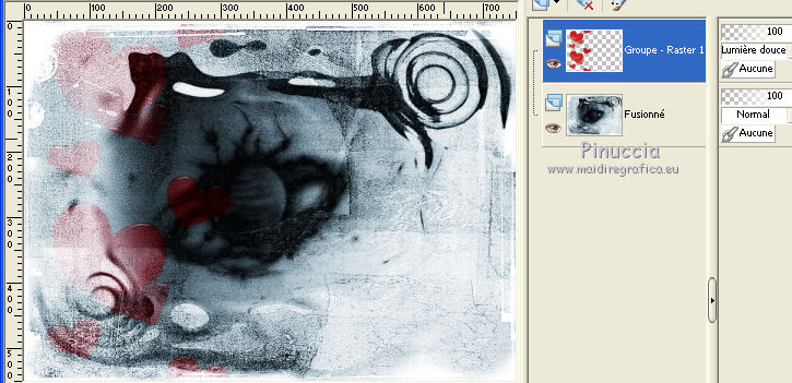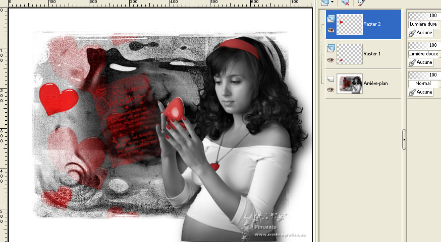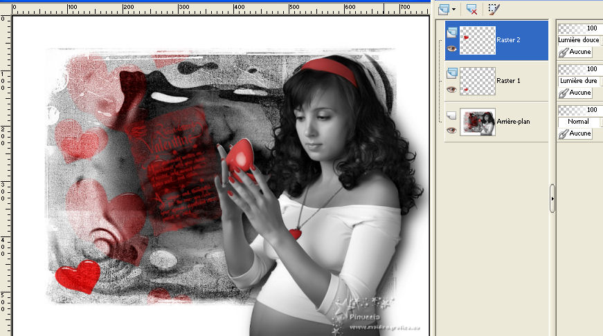 Dans la palette des calques, placer le calque d'un coeur en Lumière douce