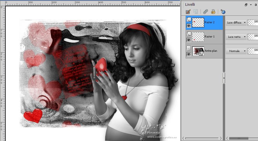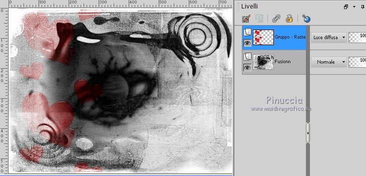 Nella paletta dei livelli, cambia la modalità di miscelatura di un cuore in Luce diffusa,