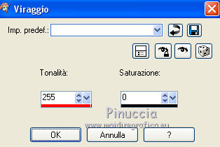 6. Regola>Tonalità e saturazione>Viraggio, con i seguenti settaggi,