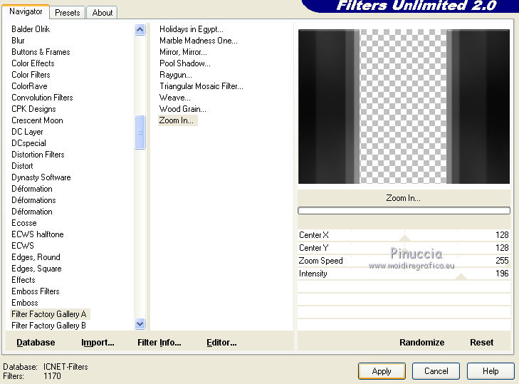 7. Effets>Modules Externes>Filters Unlimited 2.0 - Filter Factory Gallery A - Zoom in