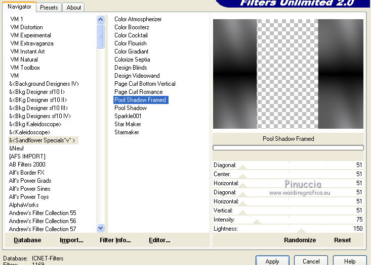 4. Effets>Modules Externes>Filters Unlimited 2.0 - Sandflower Special - Pool Shadow Framed