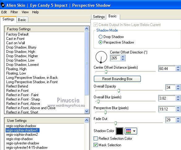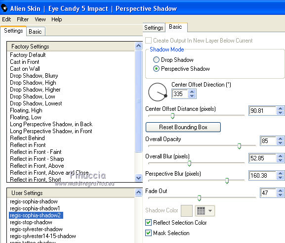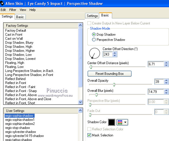 14. Effets>Modules Externes>Alien Skin Eye Candy 5 Impact - Perspective Shadow.