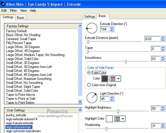 9. Effetti>Modules Externes>Alien Skin Eye Candy 5 Impact - Extrude.