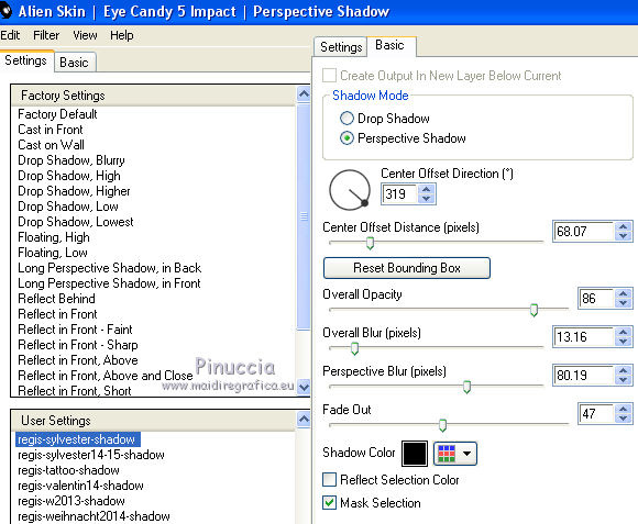 40. Effets>Modules Externes>Alien Skin Eye Candy 5 - Impact - Perspective Shadow.