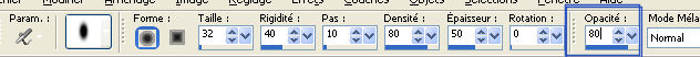 Activer l'outil Aérographe - changer l'opacité à 80.