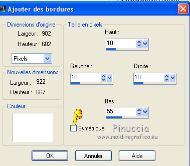 Image>Ajouter des bordures, symétrique décoché, couleur blanche #ffffff.