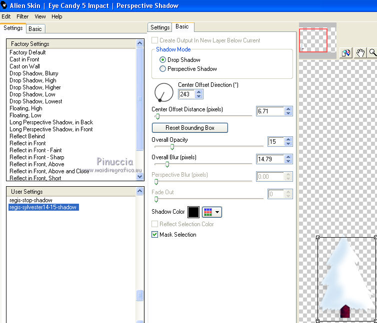 19. Effets>Modules Externes>Alien Skin Eye Candy 5 Impact - Perspective Shadow.