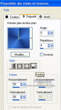 Préparer en avant plan un dégradé de premier plan/arrière plan, style Radial.