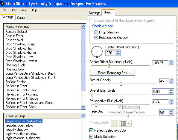 Effets>Modules Externes>Alien Skin Eye Candy 5 Impact - Perspective Shadow.