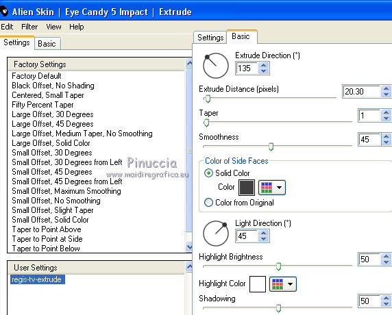 3. Effets>Modules Externes>Alien Skin Eye Candy 5 Impact - Extrude.