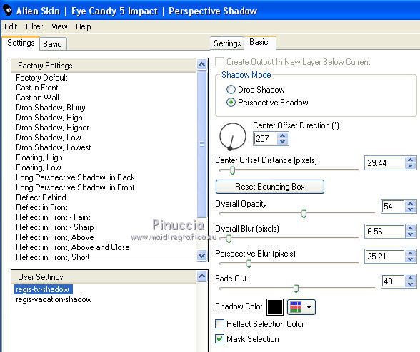 16. Effets>Modules Externes>Alien Skin Eye Candy 5 Impact - Perspective Shadow.
