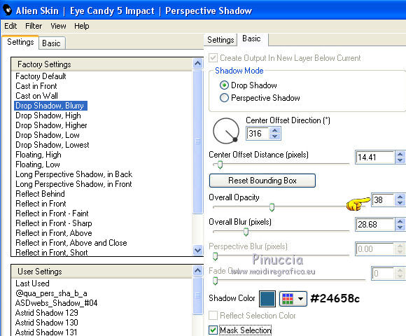 Effets>Modules Externes>Alien Skin Eye Candy 5 Impact - Perspective Shadow.