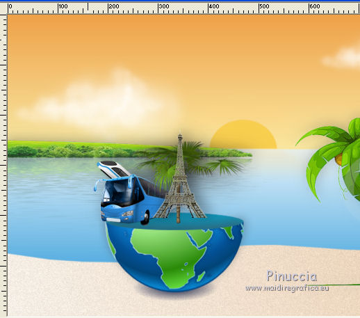 Déplacer le tube sur le monde, près du bus.