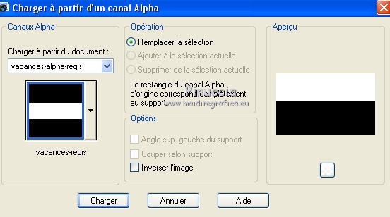 mais contient les sélections enregistrées sur le canal alpha.