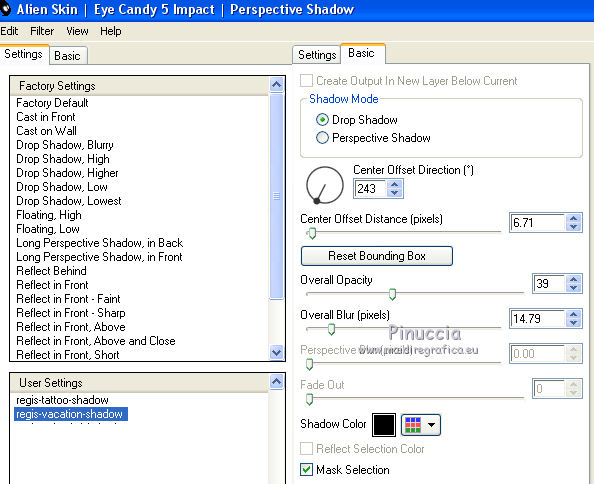 Effetti>Plugins>Alien Skin Eye Candy 5 Impact - Perspective Shadow.