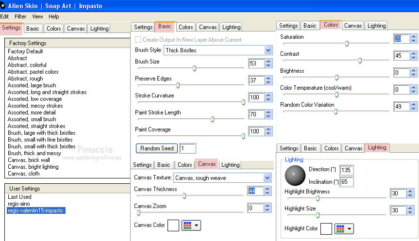 Sélectionner le preset regis-valentin15-impasto et ok.