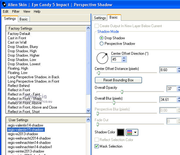 Sélectionner le preset regis-valentin15-shadow et ok.