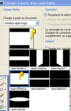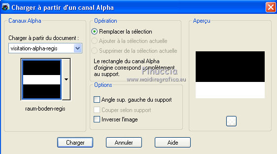 2. Sélections>Charger/Enregistrer une sélection>Charger à partir d'un canal alpha.