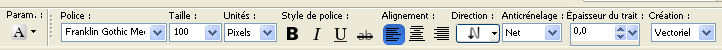 Pour mon exemple, j'ai utilisé la police Franklin Gothik Medium, taille 100, direction verticale
