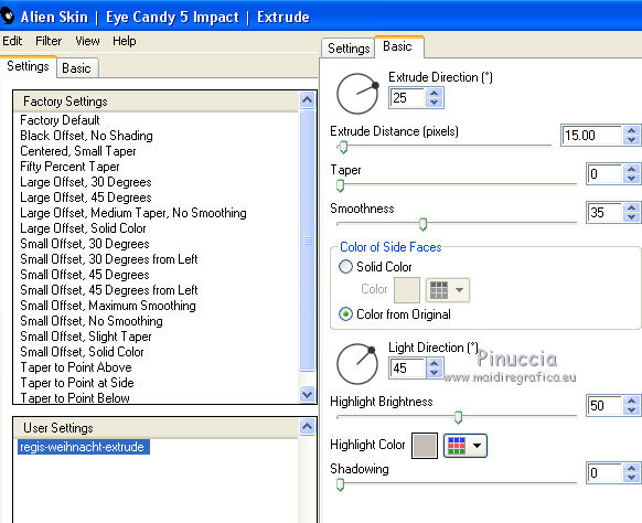 Sélectionner le preset regis-weihnacht-extrude et ok.