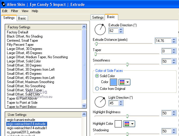 Sélectionner le preset regis-weihnachten14-extrude et ok.
