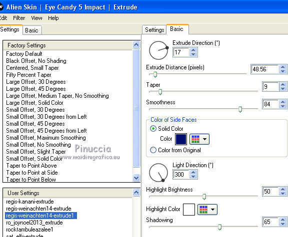 8. Effets>Modules Externes>Alien Skin Eye Candy 5 Impact - Extrude, comme précédemment (preset regis-weihnachten14-extrude).