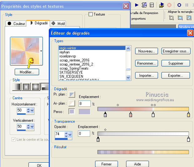 2. Placer en avant plan le dégradé et sélectionner le dégradé regis-winter, style Radial