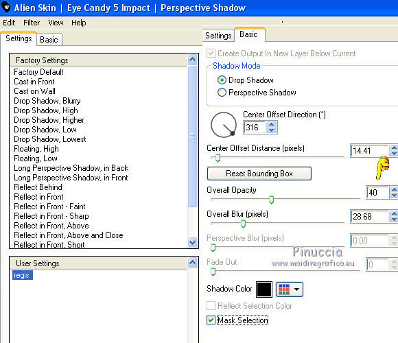 12. Effets>Modules Externes>Alien Skin Eye Candy 5 Impact - Perspective Shadow,