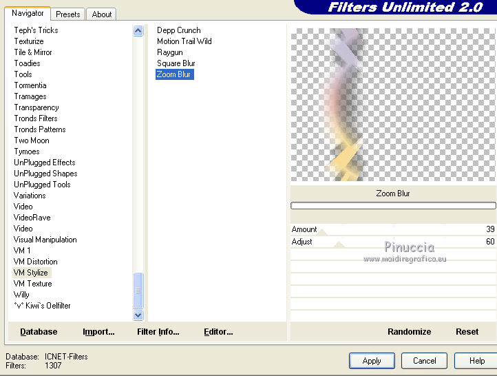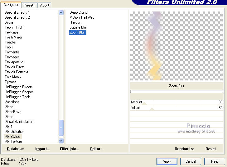 13. Effets>Modules Externes>Filters Unlimited 2.0 - VM Stylize - Zoom blur, par défaut.