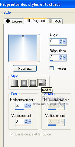 Préparer un dégradé de premier plan/arrière plan, style Radial.