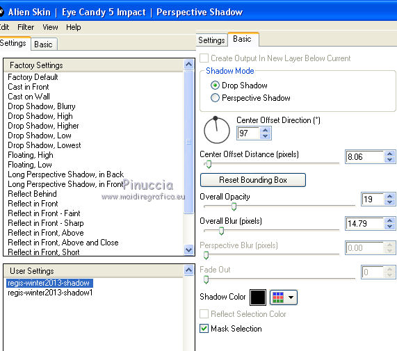 Effets>Modules Externes>Alien Skin Eye Candy 5 Impact - Perspective Shadow.