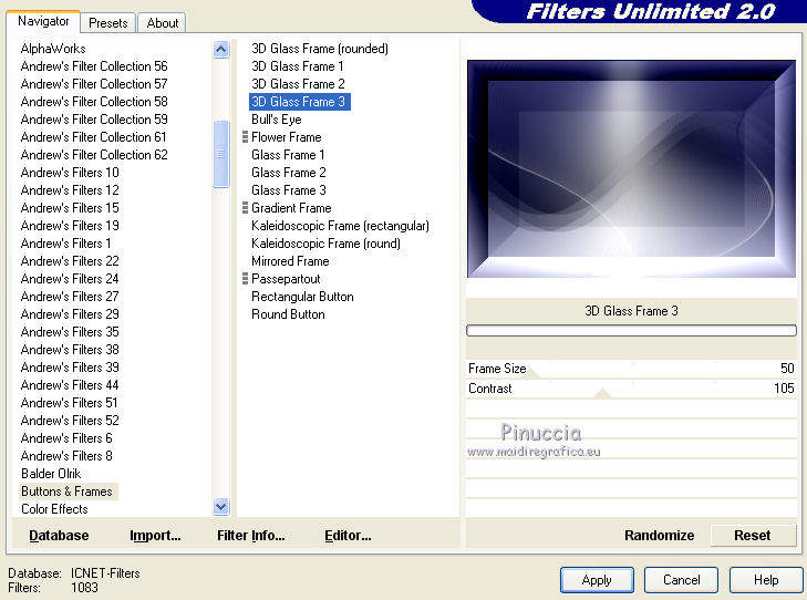 Effets>Modules Externes>Filters Unlimited 2.0 - Button & Frames - 3D Glass Frame 3.