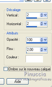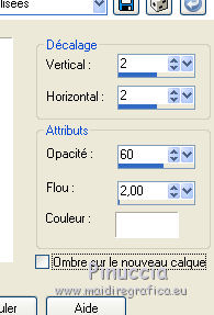 Effets>Effets 3D>Ombre portée, couleur blanche.
