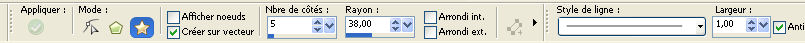 nombre de côtés 5; largeur 1, style de ligne, Plein.