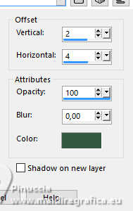 Effects>3D Effects>Drop Shadow, foreground color #31593e.