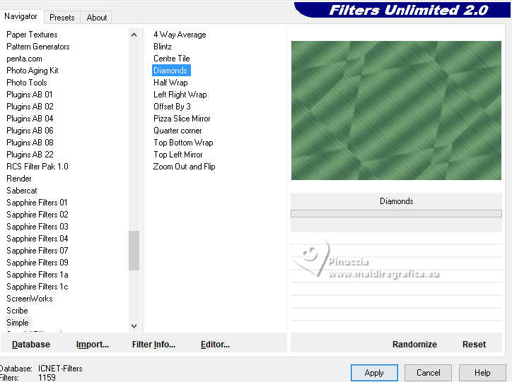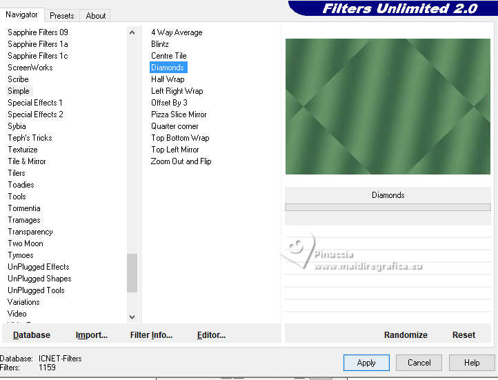Effects>Plugins>Filters Unlimited 2.0 - Simple - Diamonds
