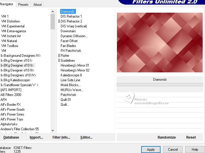 Effects>Plugins>Filters Unlimited 2.0 - &<BKg Designer sf10II> - Diamonds.