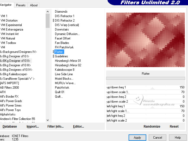 Effects>Plugins>Filters Unlimited 2.0 - &<Bkg Designer sf10II> - Flutter.
