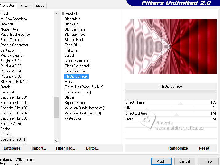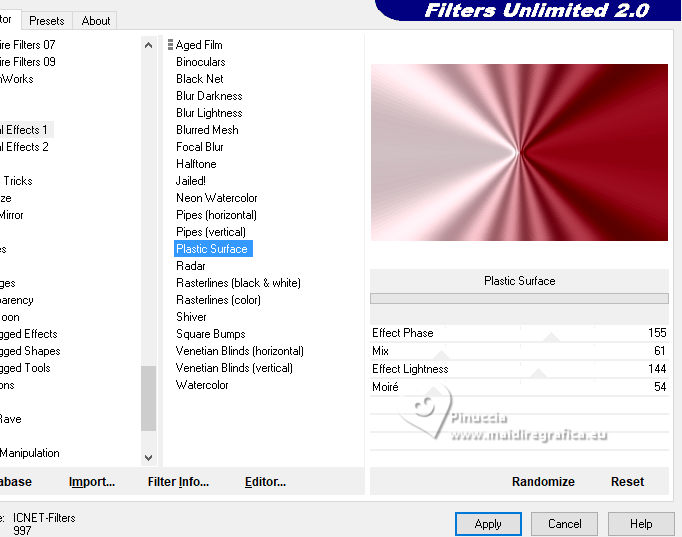 3. Effects>Plugins>Filters Unlimited 2.0 - Special Effect 1 - Plastic Surface