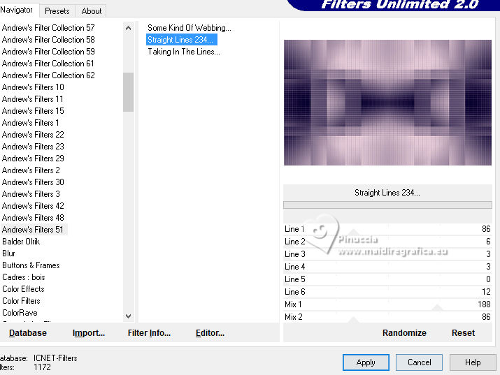 6. Effects>Plugins>Filters Unlimited 2.0 - Andrew's Filters 51 - Straight Lines 234, default settings.