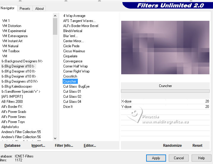 4. Effects>Plugins>Filters Unlimited 2.0 - &<Bkg Designer sf10I> - Cruncher