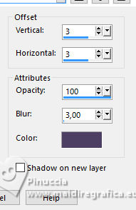 Effects>3D Effects>Drop Shadow, foreground color #4d3f63.