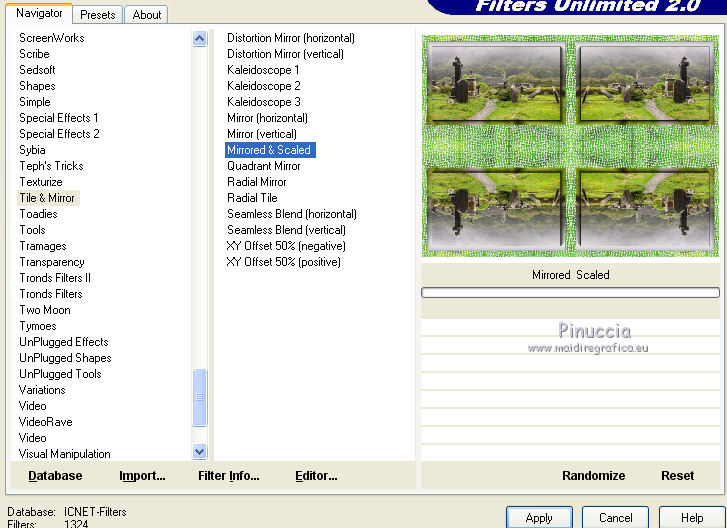 8. Effects>Plugins>Filters Unlimited 2.0 - Tile and Mirror - Mirrored and Scaled.