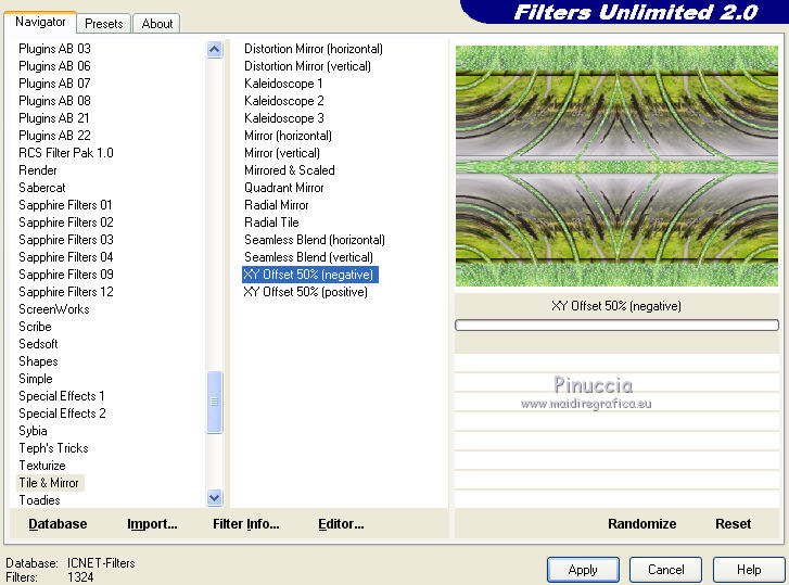 10. Effects>Plugins>Filters Unlimited 2.0 - Tile and Mirror - XY Offset 50% negative.