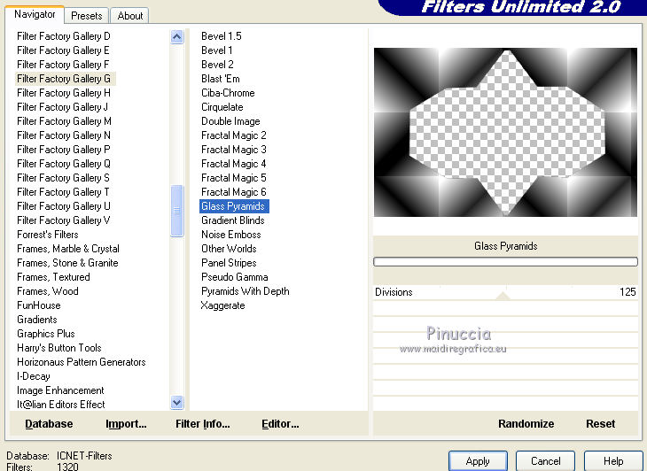 14. Effects>Plugins>Filters Unlimited 2.0 - Filter Factory Gallery G - Glass Pyramids.