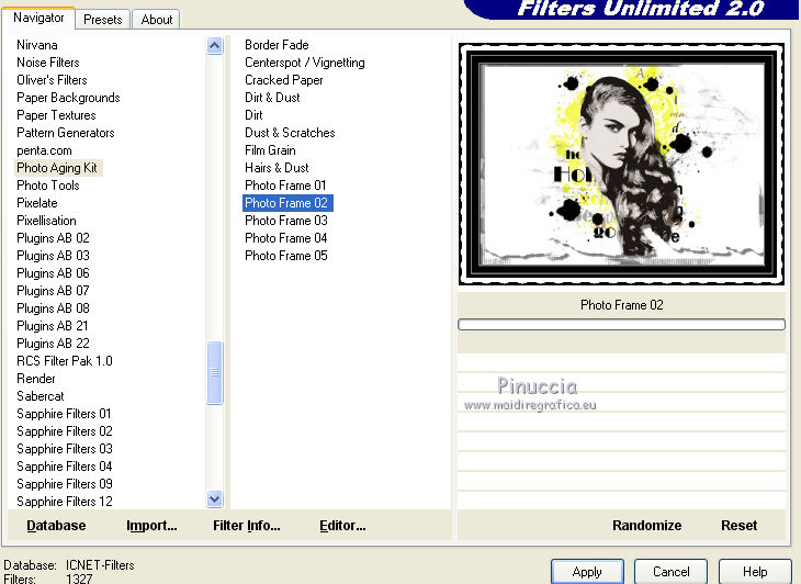 Effects>Plugins>Filters Unlimited 2.0 - Photo Aging Kit - Photoframe 2.